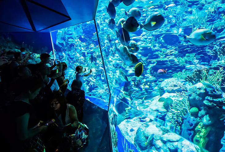 香港海洋公园三面环海,东濒深水湾,南临东博寮海峡,西接大树湾。占地87万平方米,是亚洲最大的海洋公园。它包括海洋天地、集古村、绿野花园、雀鸟天堂、山, 上机动城、急流天地、水上乐园、儿童王国等八区。该园分山上和山下两部分,有空中缆车沟通。山下为水上乐园,是亚洲第一个水上游乐中心;山上是海洋公园的主要部分,有海洋馆、海涛馆、海洋剧场、百鸟居。