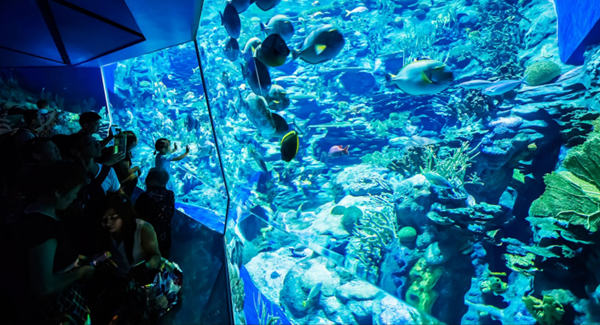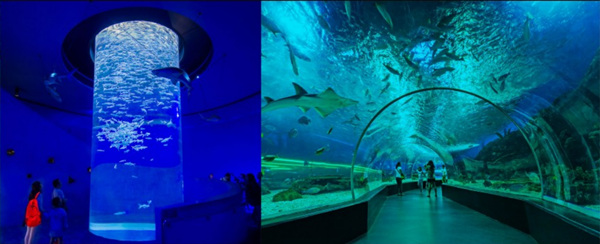 香港海洋公园三面环海,东濒深水湾,南临东博寮海峡,西接大树湾。占地87万平方米,是亚洲较大的海洋公园。它包括海洋天地、集古村、绿野花园、雀鸟天堂、山, 上机动城、急流天地、水上乐园、儿童王国等八区。该园分山上和山下两部分,有空中缆车沟通。山下为水上乐园,是海洋公园的主要部分,有海洋馆、海涛馆、海洋剧场、百鸟居。